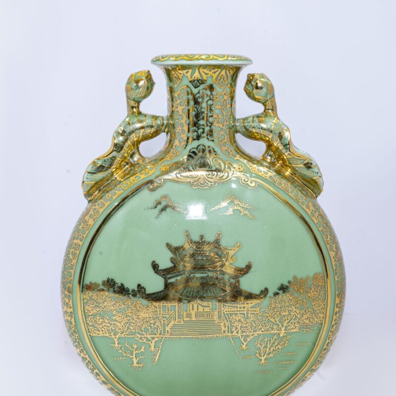Lọ Sen Vàng men Xanh Ngọc (Jadeite)