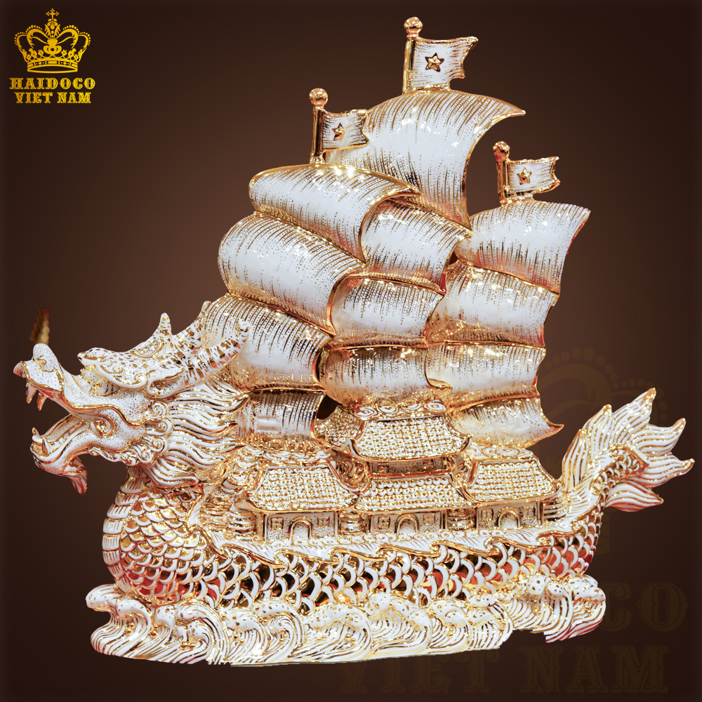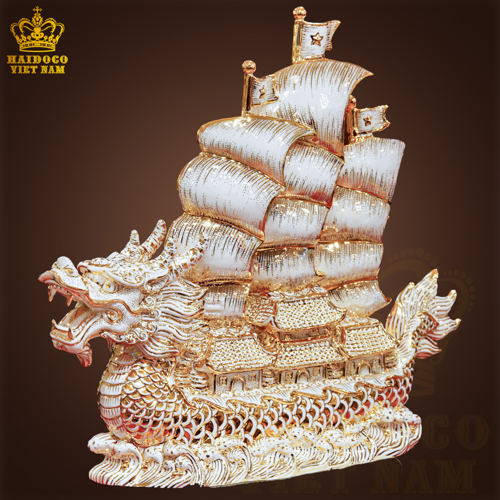 Khi cánh buồm căng gió vươn cao, cũng là lúc vận khí thăng hoa, tài lộc dồi dào, đưa gia chủ vượt qua thử thách, tiến tới bến bờ thành công. THỊNH VẬN LONG THUYỀN của Haidoco là tác phẩm nghệ thuật được chế tác từ sứ trắng cao cấp và vẽ vàng 24K, không chỉ để trưng bày mà còn chiêu tài tụ lộc, mang lại may mắn bền vững cho người sở hữu.