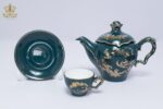✶ Màu men lục bảo, nước men phú quý: Lấy cảm hứng từ đá Ngọc Lục Bảo, bộ trà sứ khoác lên mình lớp men sang trọng, lấp lánh như những viên ngọc quý từ nơi thiên thượng rơi xuống trần gian.