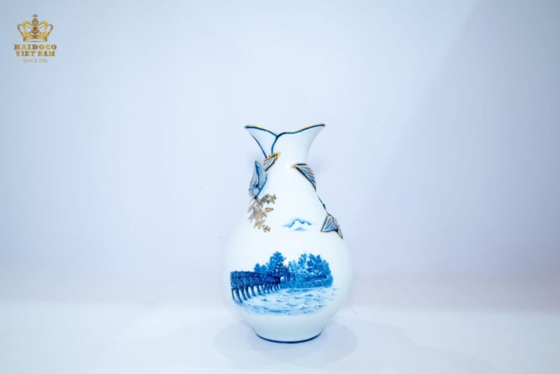 Màu men sứ sáng như ngọc sáng bóng làm nổi bật hoạ tiết vẽ vàng 24k tinh xảo của Lọ Hoa Ly, sự kết hợp này tạo nên một bức tranh hài hoà, nhấn nhá đầy ấn tượng. Theo phong thủy, Lọ Hoa Ly có tác dụng thu hút vượng khí, mang lại vận may cho gia chủ. Như lời chúc phúc bình an gửi đến từng gia đình, các nghệ nhân HaiDoCo đã lựa chọn những nguyên liệu tinh túy nhất để tạo nên tuyệt phẩm này.